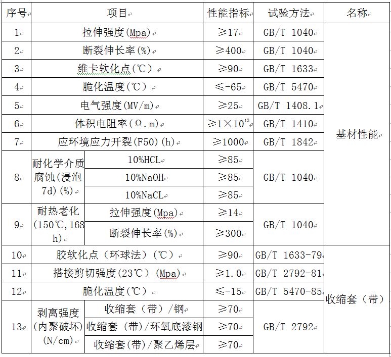 熱收縮其內(nèi)層涂敷在鋼管表面的環(huán)氧底漆,中間層為特種熱熔膠,外層為改性的輻射交聯(lián)聚乙烯基材。