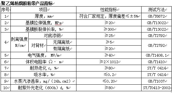 聚乙烯防腐膠帶是通過以丁基橡膠為主要成份的橡膠層熱復合到以聚乙烯為主要成份的基材層的卷狀的防腐材料。橡膠層保證了產(chǎn)品的粘結力、吸水率及密封性;基材層有效的保證了透水率、耐熱老化、拉伸強度及膠帶整體的抗沖擊力。經(jīng)過十多年的共同努力,我公司生產(chǎn)的聚乙烯防腐膠粘帶已達到了國際先進水平。廣泛應用于石油、天然氣、化工、電力、冶金、城市燃氣管網(wǎng)、供水等各種管道工程與設施中金屬管道的外防腐,也稱為管道防腐膠帶。